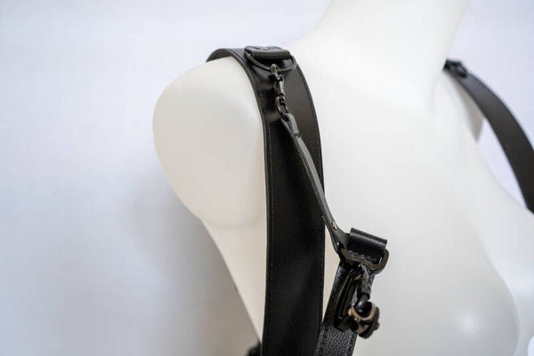 Leren camera harnas 5 cm banden